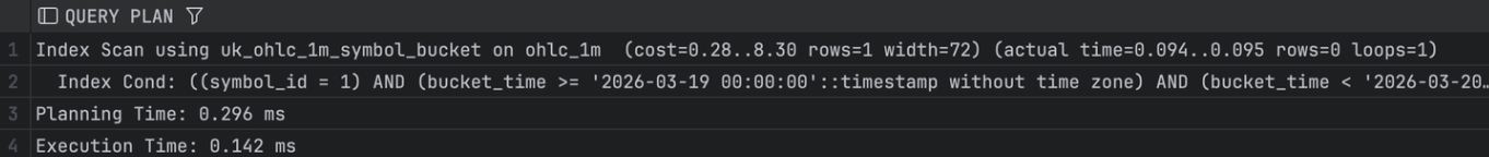 차트 저장 과정에서 (symbolid, bucketTime)에 유니크 인덱스를 걸어주었기 때문입니다.(중복 저장 방지를 위한 제약조건)