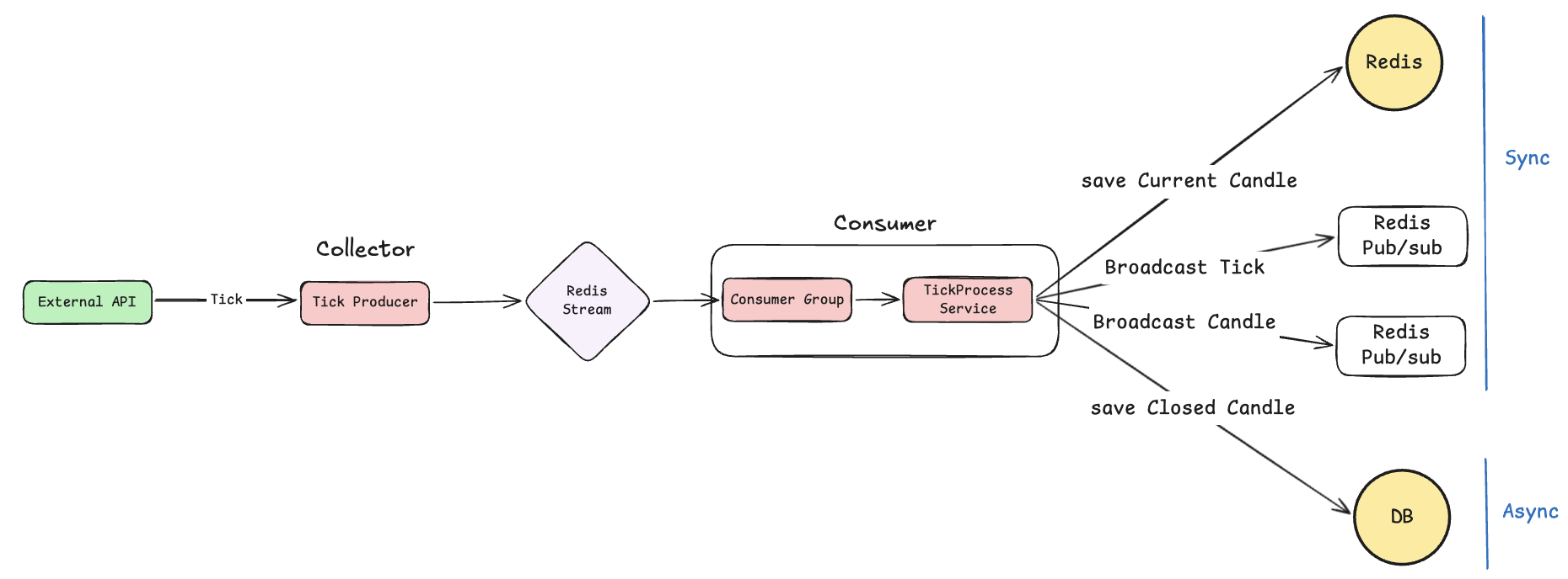 2. 호출한 Tick 데이터를 Collector 모듈이 Message Queue(Redis Stream)에 publish 합니다.